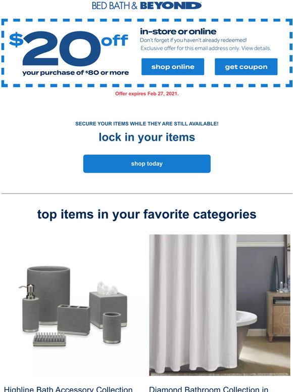 And while you're there, sign up for emails to get alerts about discounts and more, right in your inbox. Bed bath & beyond has products for just about every room in your room. Find 28 live & verified coupon codes ready for april 2021.