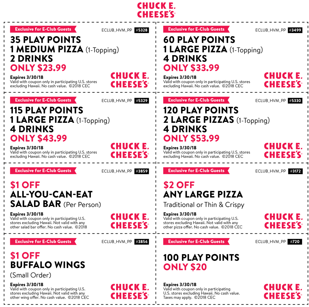 Get the best chuck e cheese deals december 2019. Up to 10% off shop at chuckecheese.com for great savings with this free shipping chuck e. Chuck e cheese prides itself on offering exceptional value for money but understands that eating out as a family can be expensive. Below are 47 working coupons for chuck e cheese coupons from reliable websites that we have updated for users to get maximum savings.